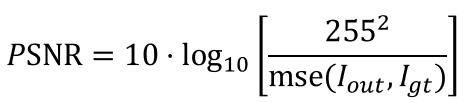 We are going to use Peak Signal-to-Noise Ratio (PSNR:15%), Structural Similiarty (SSIM:15%) [2] and Angular Error (AE:20%) as quantitative metrics to evaluate and rank the colorization results. The PSNR value is calculated according to: